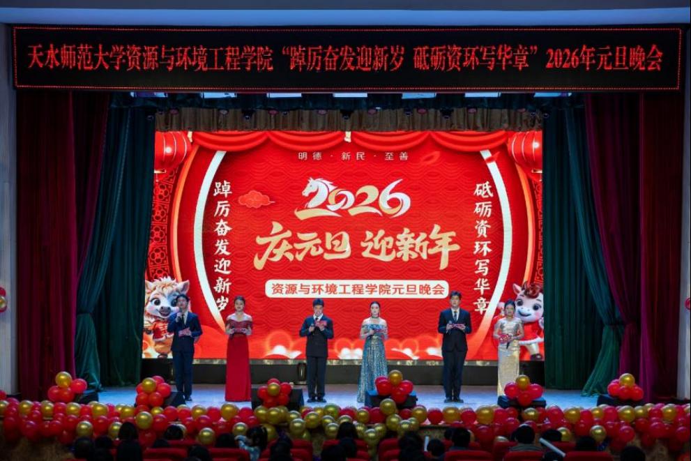 2025年12月23日晚,资源与环境工程学院在学校礼堂举办2026年元旦晚会。学院领导、教师代表与全体学生齐聚一堂,在辞旧迎新的庄重氛围中,共同回望奋进历程、凝聚前行动力。 晚会以气势磅礴的武术表演《震山河》拉开帷幕。铿锵有力的动作与昂扬向上的精神风貌,生动展现了新时代青年学子蓬勃进取的青春姿态,也为整场晚会奠定了奋进向前的主基调。晚会开始前,院长赵强致辞。2025年是学校和学院发展进程中具有标志性意义的一年,...